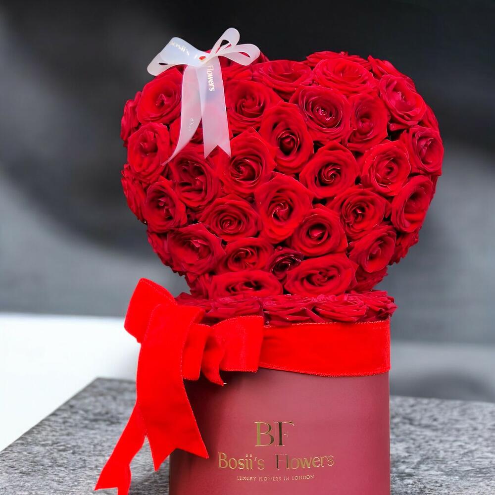 red roses - 60 шт. шляпная коробка с цветами от bosiis - 1 шт.