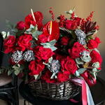 Поддайтесь вечной романтике корзины "Рубиновое Сияние", роскошной композиции, которая воплощает страсть и изысканность.