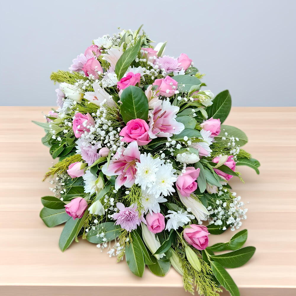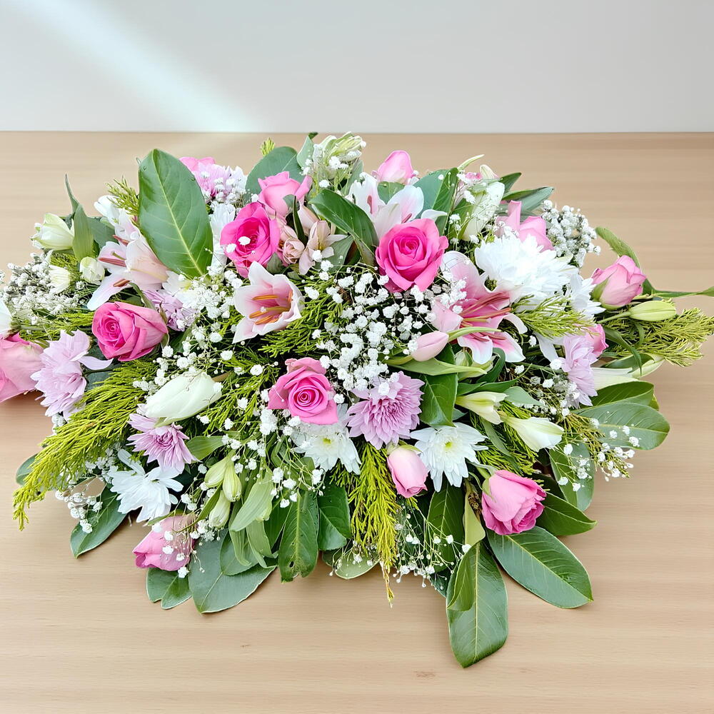 Небольшая двусторонняя цветочная композиция в розовых и белых оттенках Примерно 2 фута в длину и 1 фут в ширину