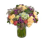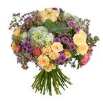 Необычная композиция, полная изысканности. Включает гвоздики, гортензии, букетные розы и другие цветы.