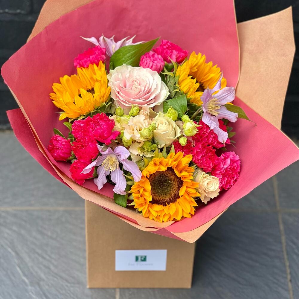 Представляем букет «Восход солнца» с подсолнухом, клематисом, розовой розой и розовой гвоздикой! Эта потрясающая композиция передает суть прекрасного восхода солнца благодаря своим ярким цветам и потрясающему сочетанию текстур. Подсолнух добавляет букету нотку солнца и счастья, а клематис и розовая роза — нотку романтики и элегантности. Розовая гвоздика объединяет все это, создавая прекрасное и гармоничное сочетание цветов и текстур. Букет «Восход солнца» — идеальный подарок на любой случай, будь то день рождения, годовщина или просто так. Закажите букет «Восход солнца» сегодня и насладитесь красотой и очарованием этой потрясающей цветочной композиции!