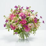 Букет, напоминающий о летних днях и ясном голубом небе. Он выразителен и благоухает; этот дизайн переносит зрителя и фокусирует внимание на великолепной силе цветов. Со свежими ромашками и бледно-розовыми розами, нашими любимыми гвоздиками и крепкими стеблями альстромерии, это взрыв цвета, способный соперничать с любым фейерверком.