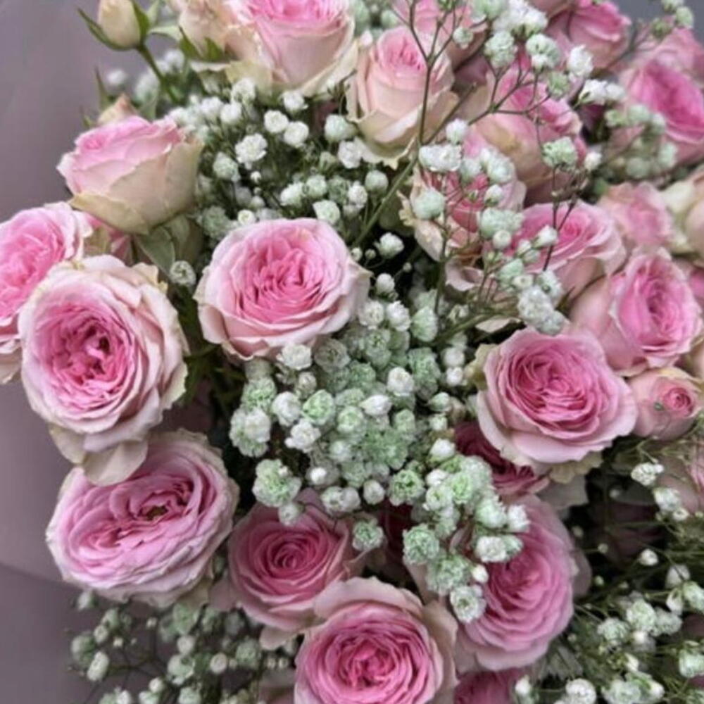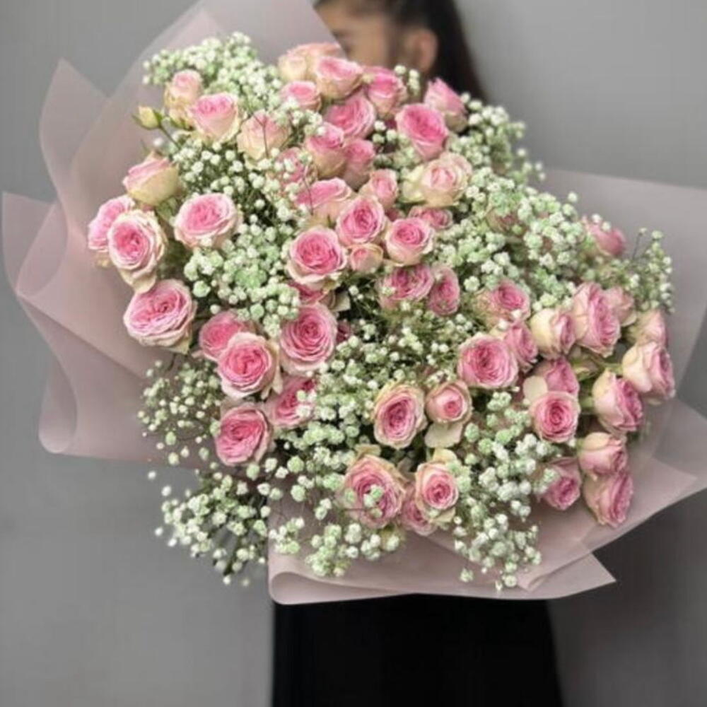 Излучающий нежную элегантность, этот изысканный букет является праздником цветочной красоты. Включает в себя 12 очаровательных розовых спрей-роз, сочетающихся с 12 стеблями нежной Гипсофилы, это ассорти идеально подходит для выражения ваших чувств при любом случае. Смесь этих цветов излучает завораживающий аромат и оставляет долговечное впечатление. Это потрясающее цветочное украшение является идеальным подарком, чтобы очаровать ваших близких или добавить изысканности вашему пространству. Украсьте вашу обстановку или выразите свои чувства с помощью этой великолепной композиции, фантастической работы наших флористов из специальной коллекции.