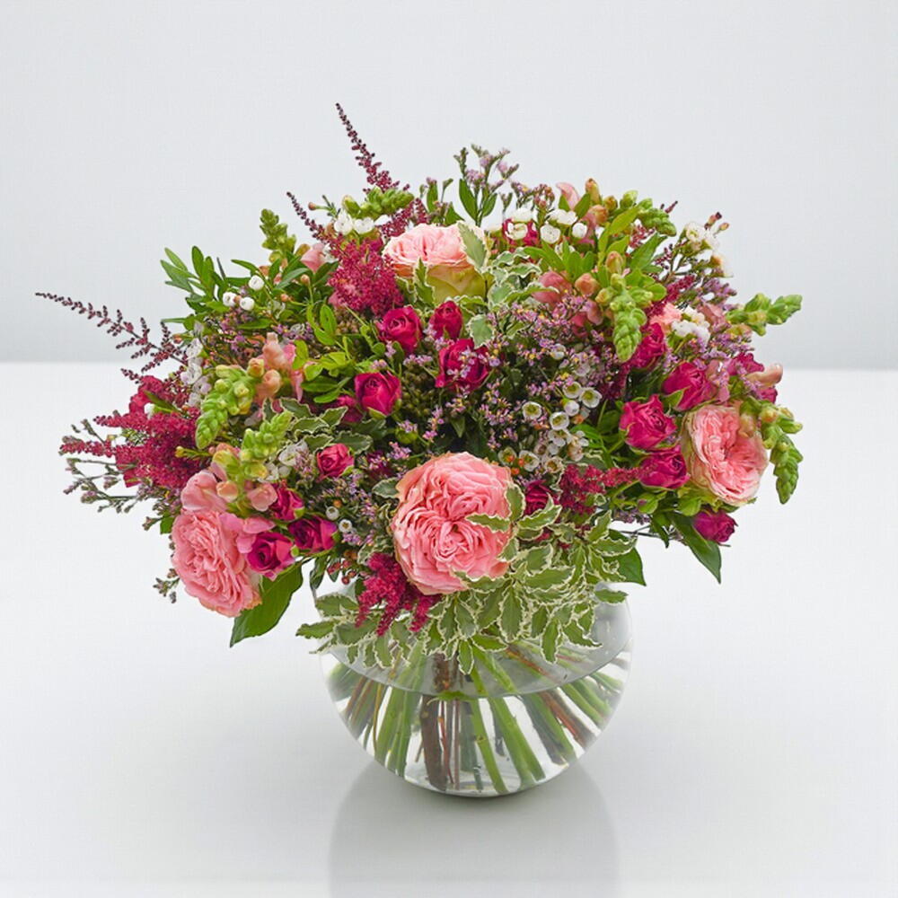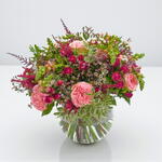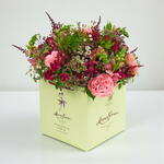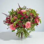 Эта игривая и яркая цветовая палитра создает основу для этого очаровательного букета. Фуксия спрей-розы с горячо-розовыми розами и розовым астильбой формируют этот веселый и женственный дизайн. Более диковинный по стилю, но такой же элегантный, этот дизайн контрастирует с изящной белой альстромерией и белой нигеллой, создавая мечтательную композицию. Дополненный легко ароматным розмарином и сезонной зеленью, этот букет станет прекрасным подарком для друга или любимого человека с его романтическим, но молодежным очарованием.