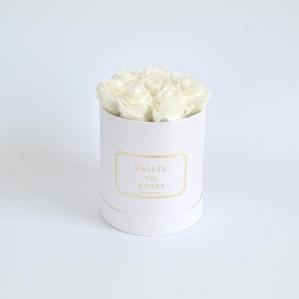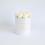 Сдержанная элегантность сочетается с вечной красотой в этой изящной композиции из сохранённых белых роз. Символизируя чистоту, искренность и мир, эти безупречные цветы - изысканный способ сказать «спасибо», «я тебя люблю» или просто «я о тебе думаю». Расположенные в минималистичной белой шляпной коробке с золотистыми деталями, этот небольшой букет приносит ощущение тихой роскоши в любое пространство. Это настоящие розы, которые были сохранены для того, чтобы продержаться более года без полива и специального ухода. Чтобы они оставались в лучшем виде, избегайте прямых солнечных лучей, чрезмерной влажности и прикосновений — просто позвольте им сиять самостоятельно.