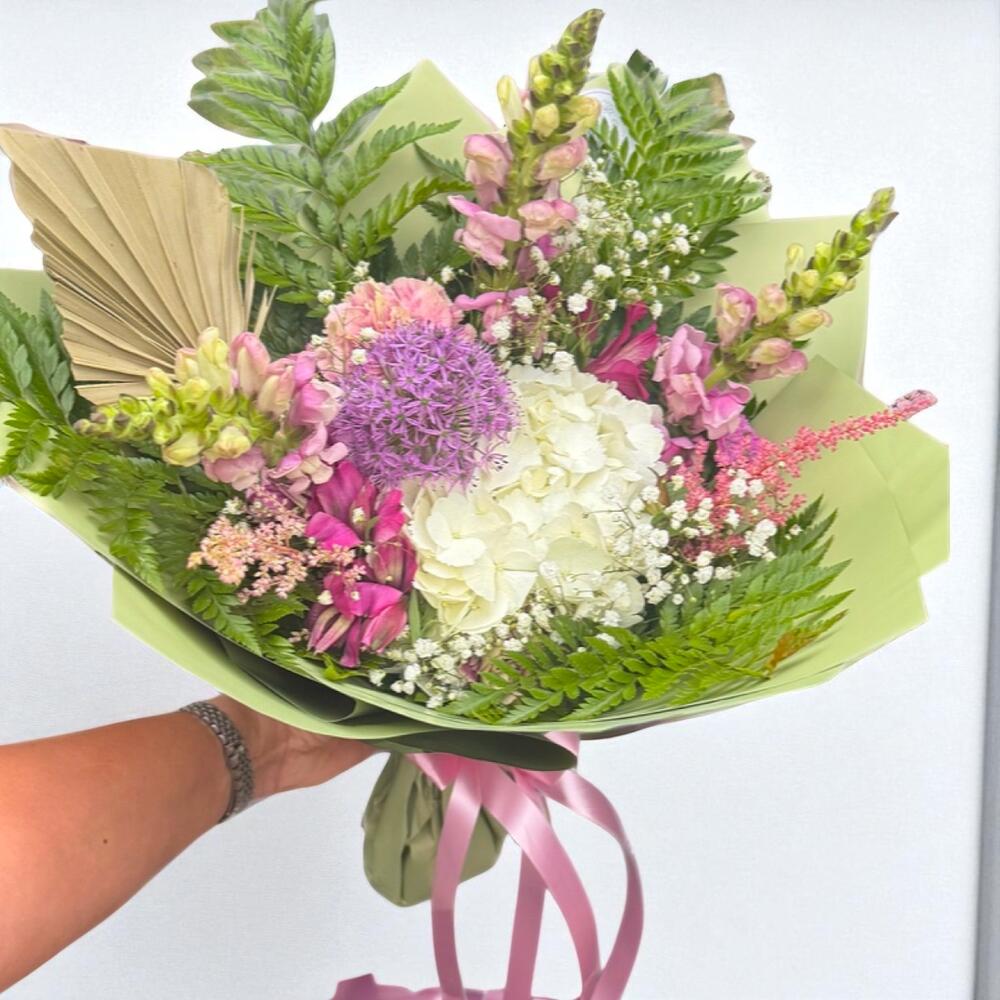 Букет по выбору флориста Wild – Гортензия, Аллиум, Львиный зев с сезонной зеленью