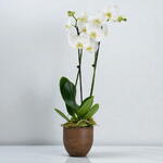 Потрясающая посадочная композиция из миниатюрных орхидей фаленопсис. Эти орхидеи специально отобраны у выбранных производителей, чтобы обеспечить яркое цветение и исключительное качество. С их изящными крыловидными и долгоцветущими цветками, расположенными на высоких ветвистых стеблях, неудивительно, что орхидеи так нравятся любителям растений. Доступно в коричневом или белом горшке. Диаметр 20 см, высота 30-40 см