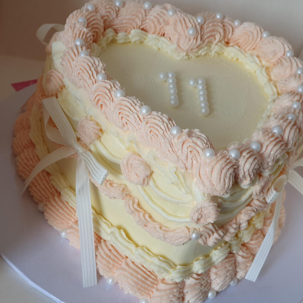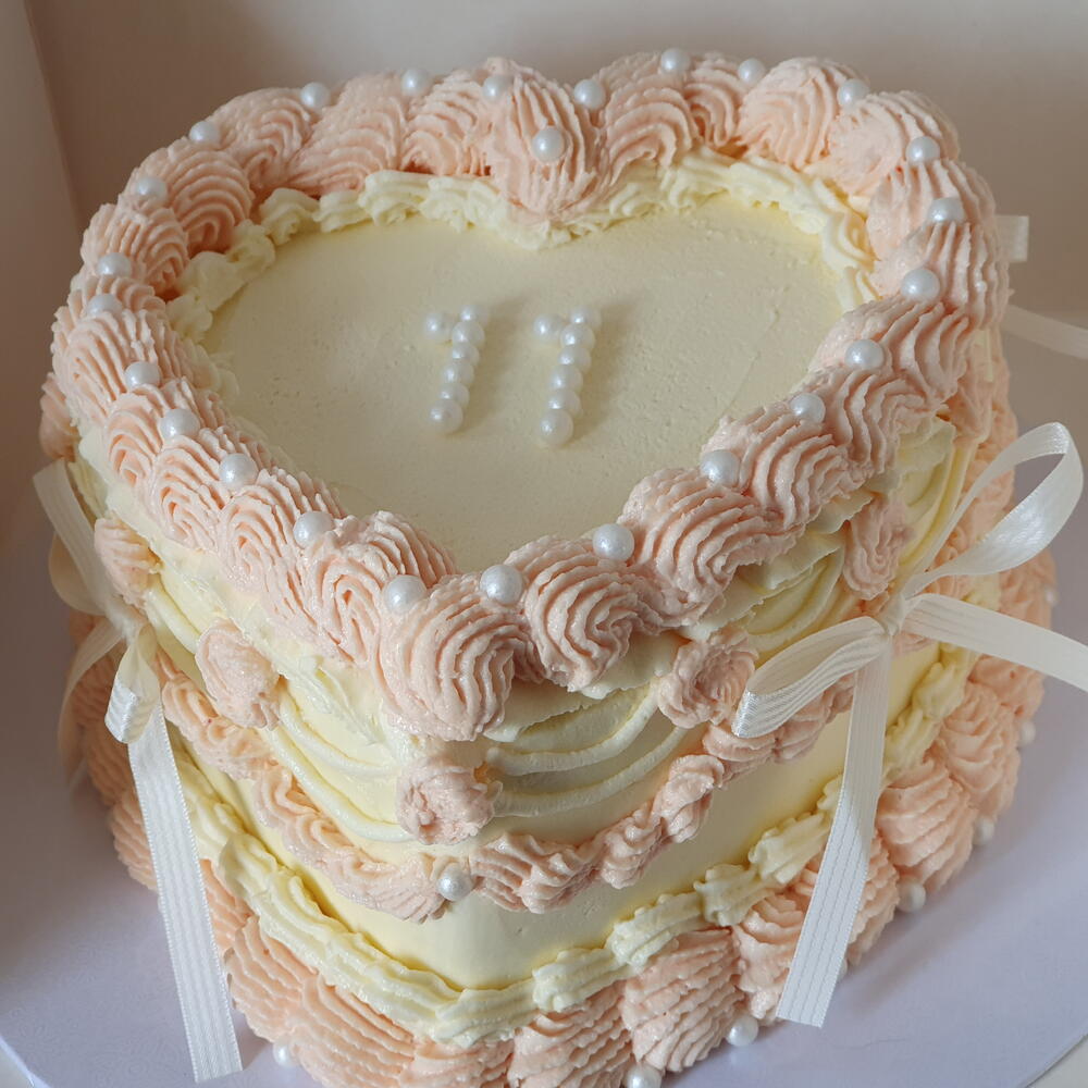 Найкрасивіший торт у формі серця з бантиками та їстівною перлинною цифрою Доступний у багатьох пастельних кольорах, тож будь ласка, запитуйте