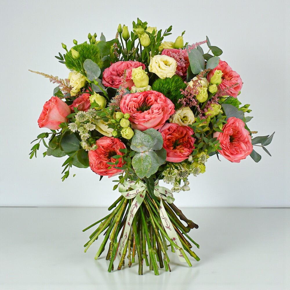 Букет «Кораловий риф» поєднує в собі коралові садові троянди, персиковий лізіантус, зелену астранцію та ніжно-рожеву астильбу в яскравому, текстурованому дизайні — натхненний кольорами та рухом коралового рифу, він нагадує свіжість безтурботних літніх днів біля моря.
