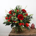 Цей приголомшливий букет містить насичені червоні троянди та яскраві червоні тюльпани, що символізують кохання, пристрасть і тепло. Насичені відтінки червоного красиво доповнені ніжним зеленим листям і м’якими акцентами зелені, створюючи збалансований і гармонійний вигляд. Чи то на річницю, чи на День святого Валентина, чи просто щоб показати комусь, що вам не байдуже, цей букет передає вічне послання прихильності й елегантності. Професійно оформлена, ця розкішна композиція ідеально підходить, щоб зробити будь-яку подію по-справжньому особливою.