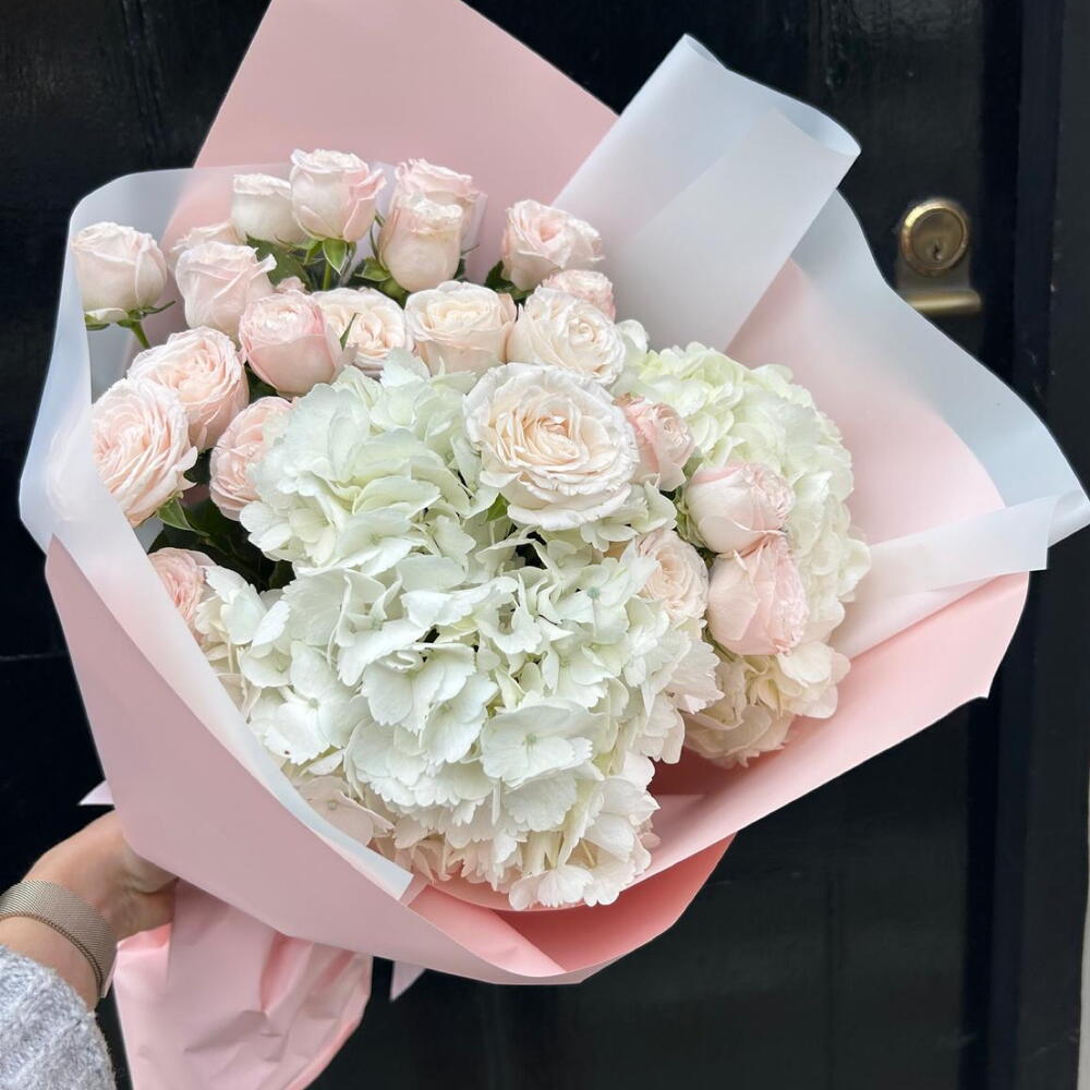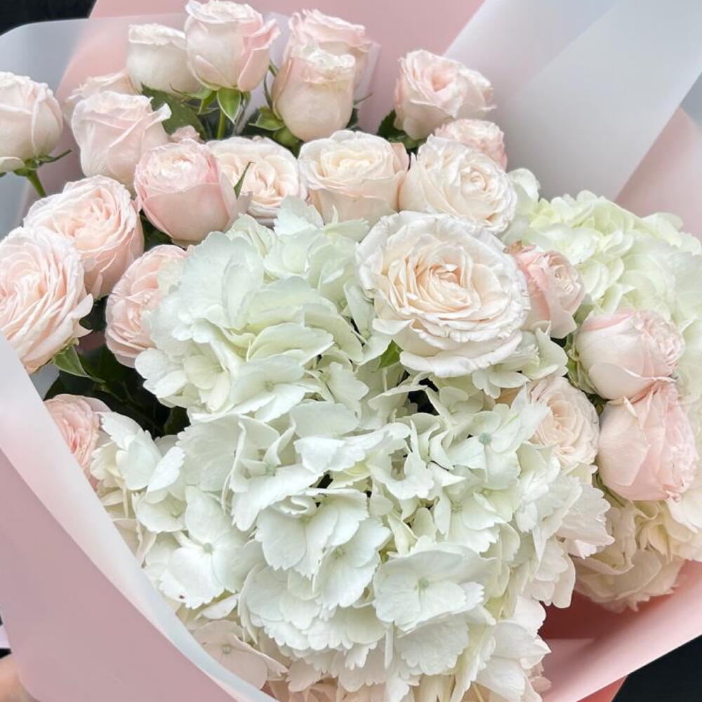 pink spray rose - 5 шт. white hydrangea - 2 шт.