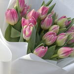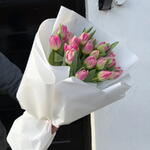Свіжий букет ніжних яскраво-рожевих тюльпанів, загорнутий у елегантний преміум-папір. Ці весняні квіти створюють м'яку та радісну композицію, ідеальну для днів народження, свят і особливо як прекрасний подарунок до Міжнародного жіночого дня. 🌷🌸