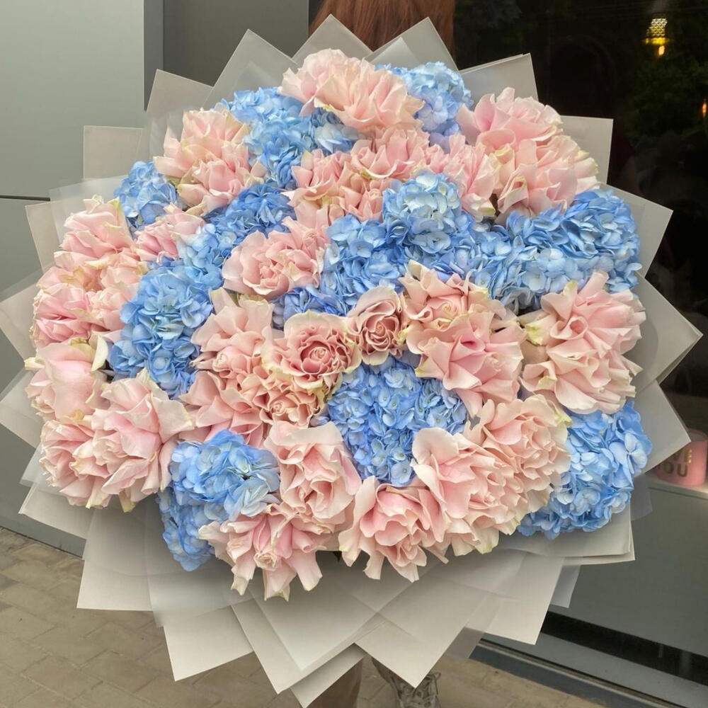 blue hydrangea - 15 шт. roses - 30 шт.