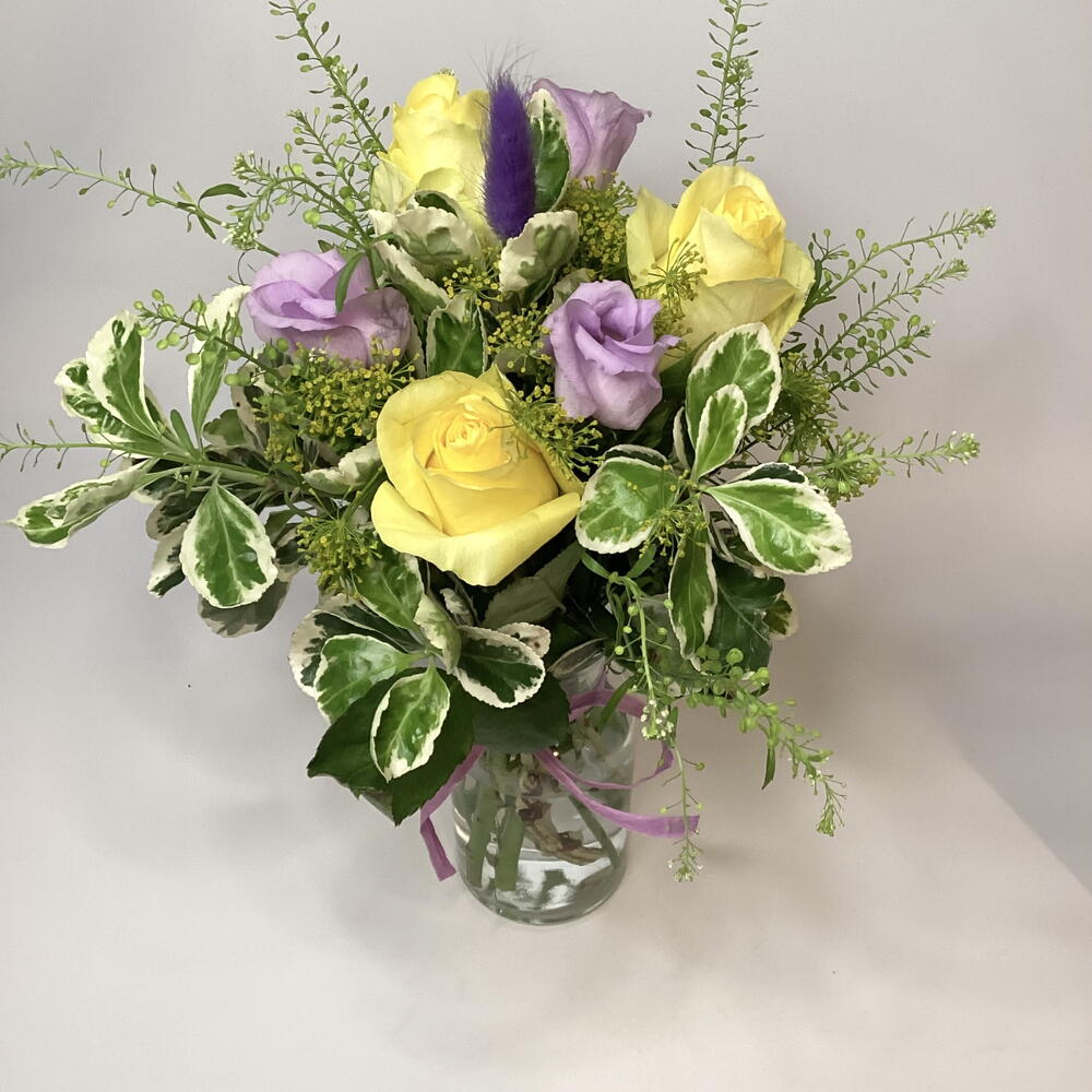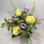 Побалуйте своїх коханих або себе нашою композицією Florists Special. У цьому букеті — ніжний лізіантус і три сяючі жовті троянди, ретельно відібрані та оформлені нашими досвідченими флористами. Кожна квітка — спалах природної краси, ідеальний знак любові, дружби чи вдячності. Чи то як подарунок, чи щоб прикрасити ваш інтер'єр, він обіцяє дарувати радість і тепло. Ваза в комплекті, розмір 12 см.