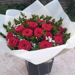 Букет червоних троянд, наповнений червоними трояндами на довгих стеблах та пишною мікс-зеленню. Упаковка Aqua, букет доставлений у воді. Букет, зображений на фото, великого розміру. Доставка наступного дня. Зверніть увагу, що через сезонну наявність квітів, може знадобитися відрізняти окремі квіти від зображених. Ми можемо замінити квіти на аналогічні за стилем, якістю та вартістю.
