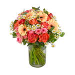 Підніміть комусь настрій з Peachy Pop - екстравагантним і яскравим букетом гербер, доступним цілий рік. Цей букет, який неможливо пропустити, гарантовано викличе усмішку на їхньому обличчі.