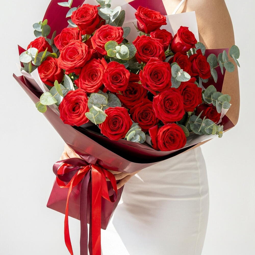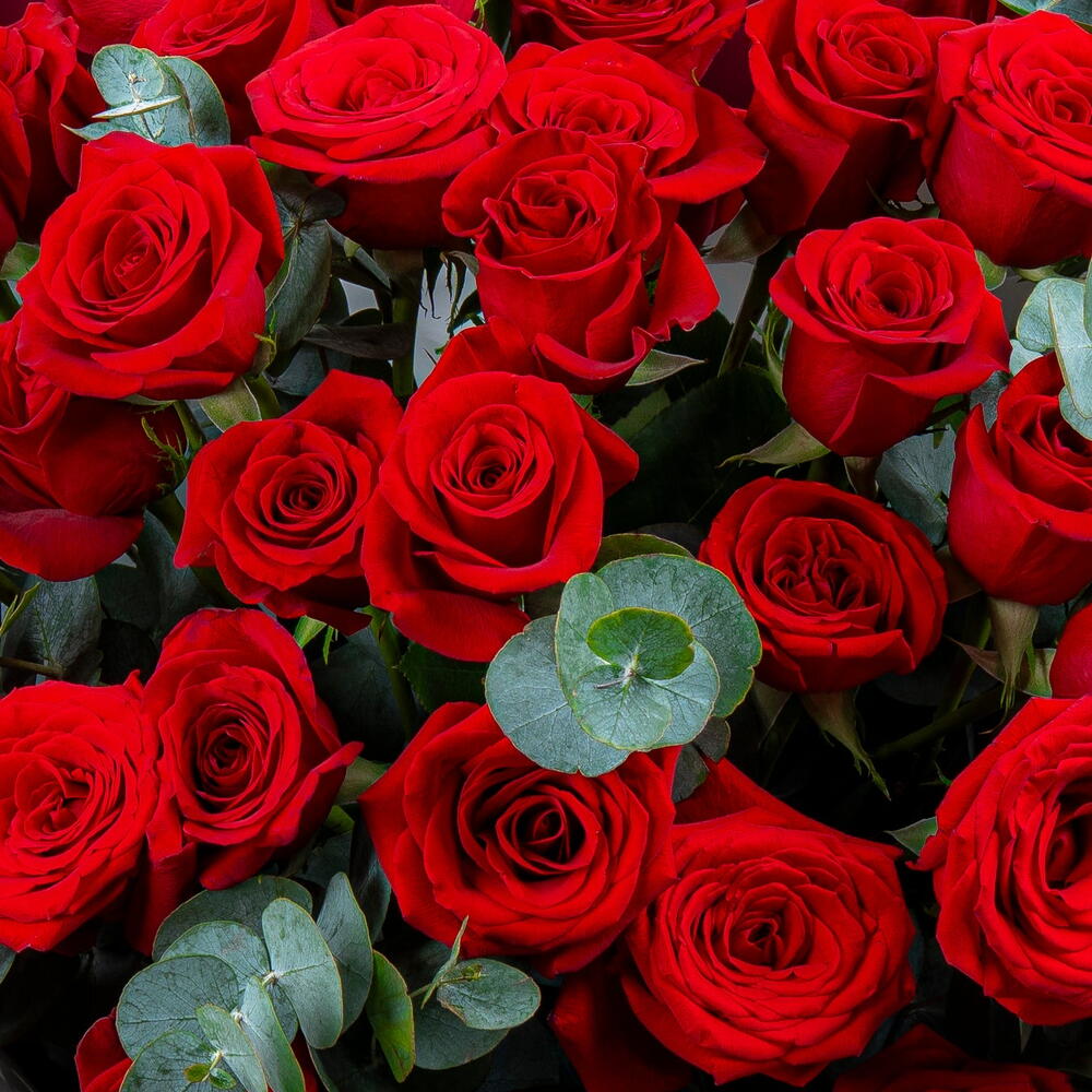 Eucalyptus - 10 шт. преміумні червоні троянди - 50 шт.