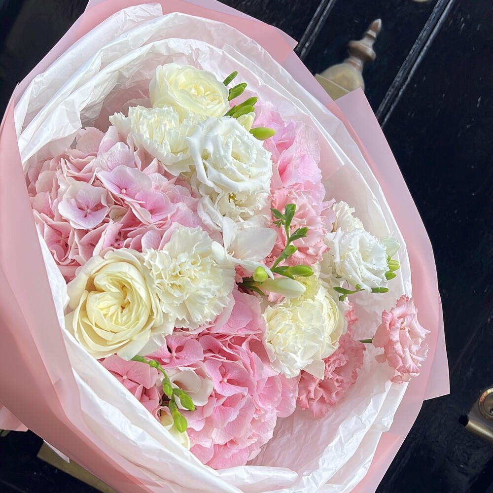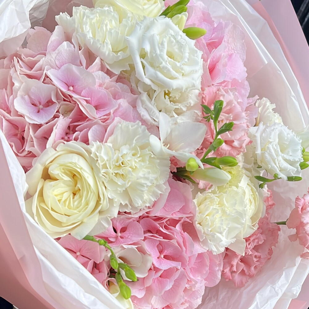 hydrangeas pink - 3 шт. roses - 8 шт.