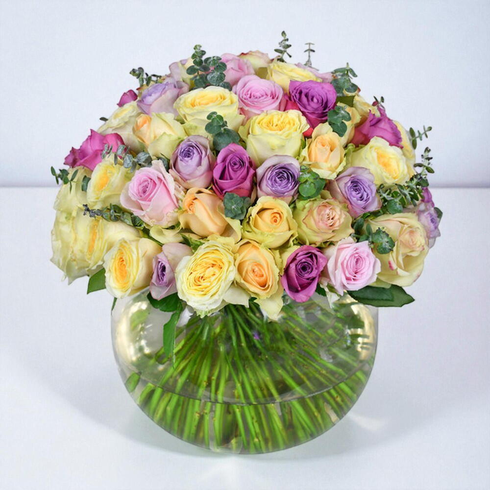 Зроблений вручну в Лондоні з найкращих британських та міжнародних квітів, цей божественний букет містить деякі з наших улюблених троянд, супроводжуваних гілочками ароматного евкаліпта. Помпезний, барвистий дизайн: троянди утворюють характерну куполоподібну форму, що є фірмовою ознакою всіх букетів Moyses Stevens.