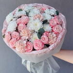 Peony rose - 5 шт. Chrysanthemum - 5 шт. carnation pink - 5 шт. eucalyptus leaves - 5 шт.