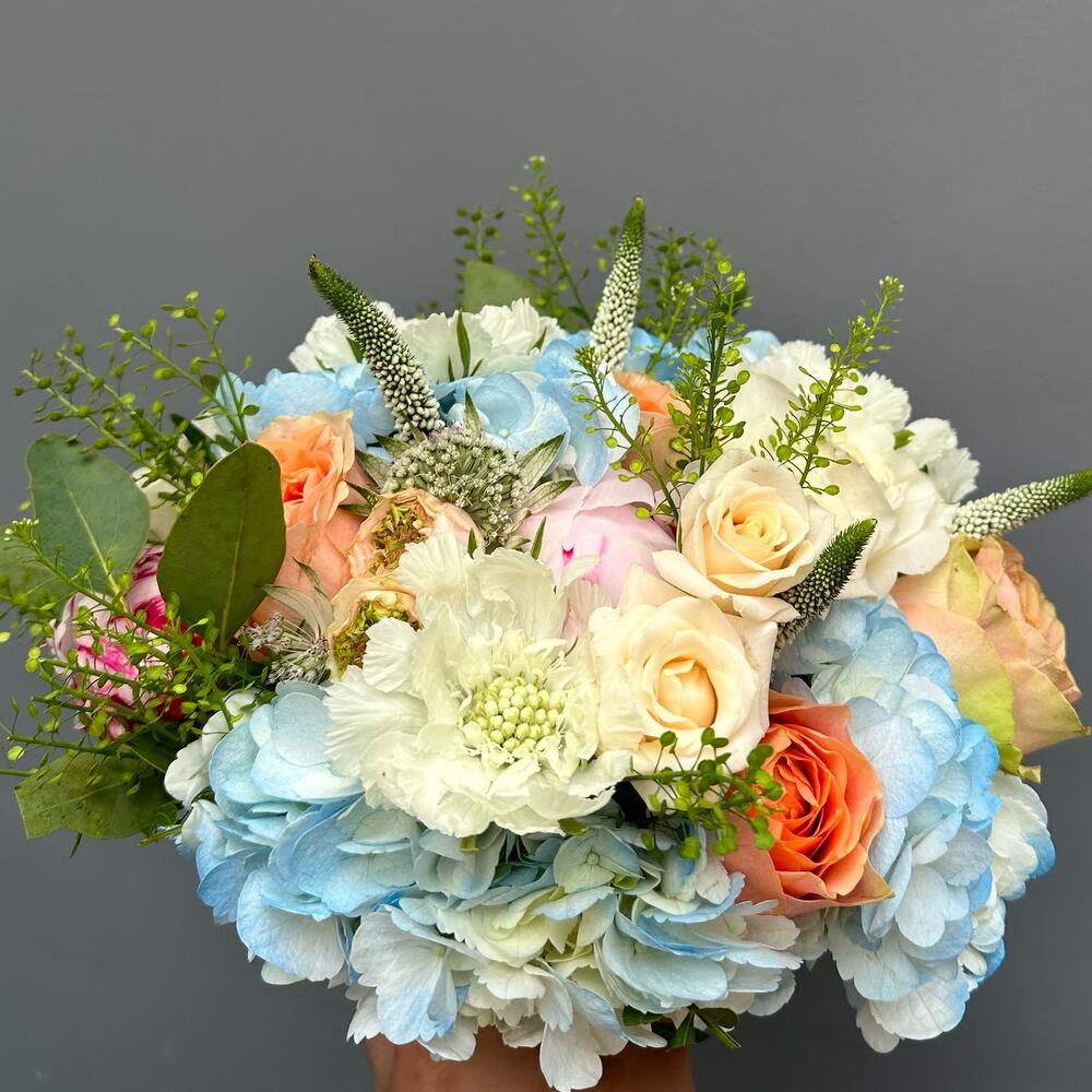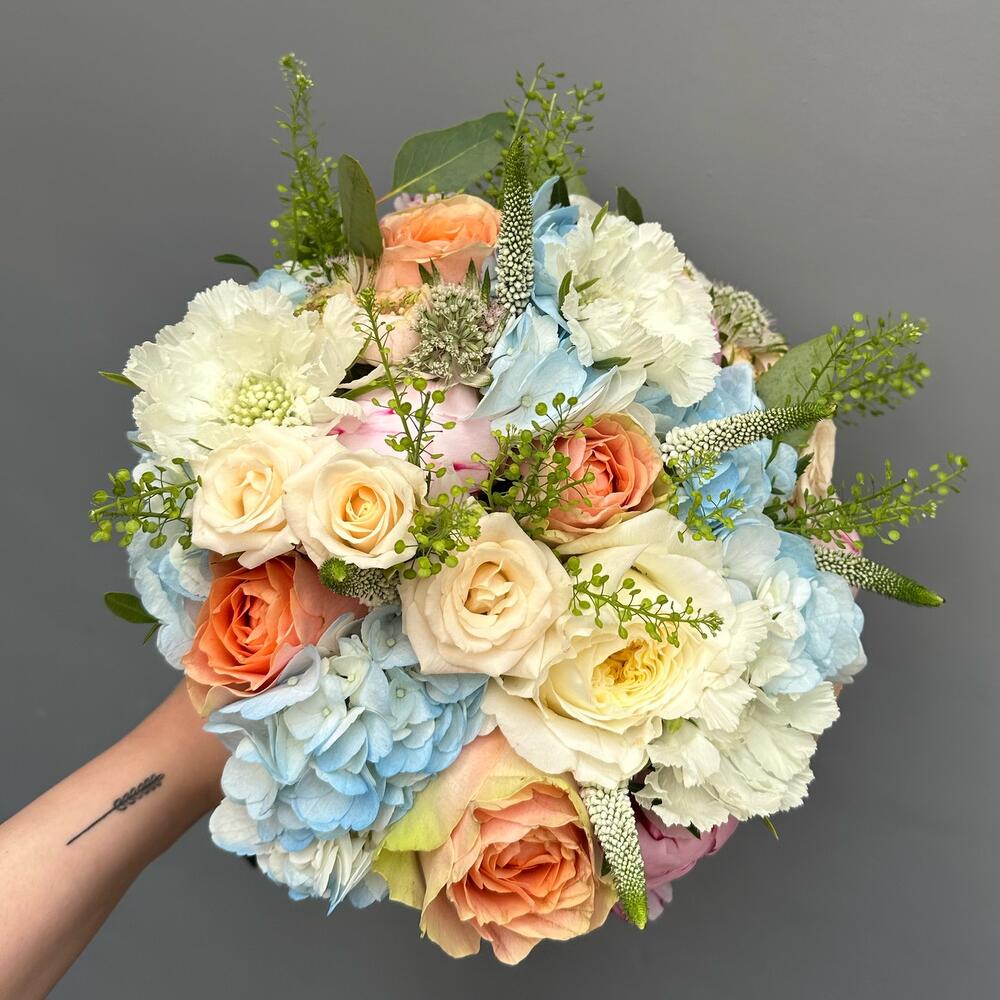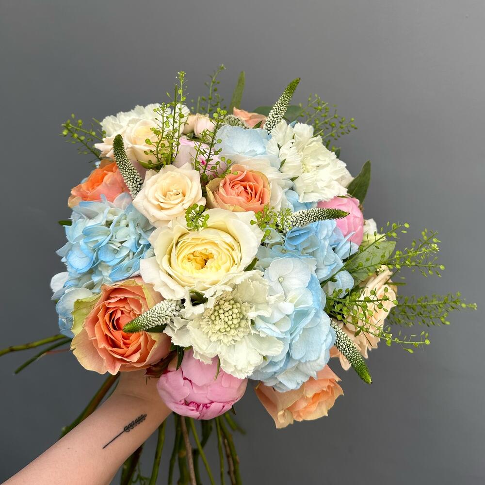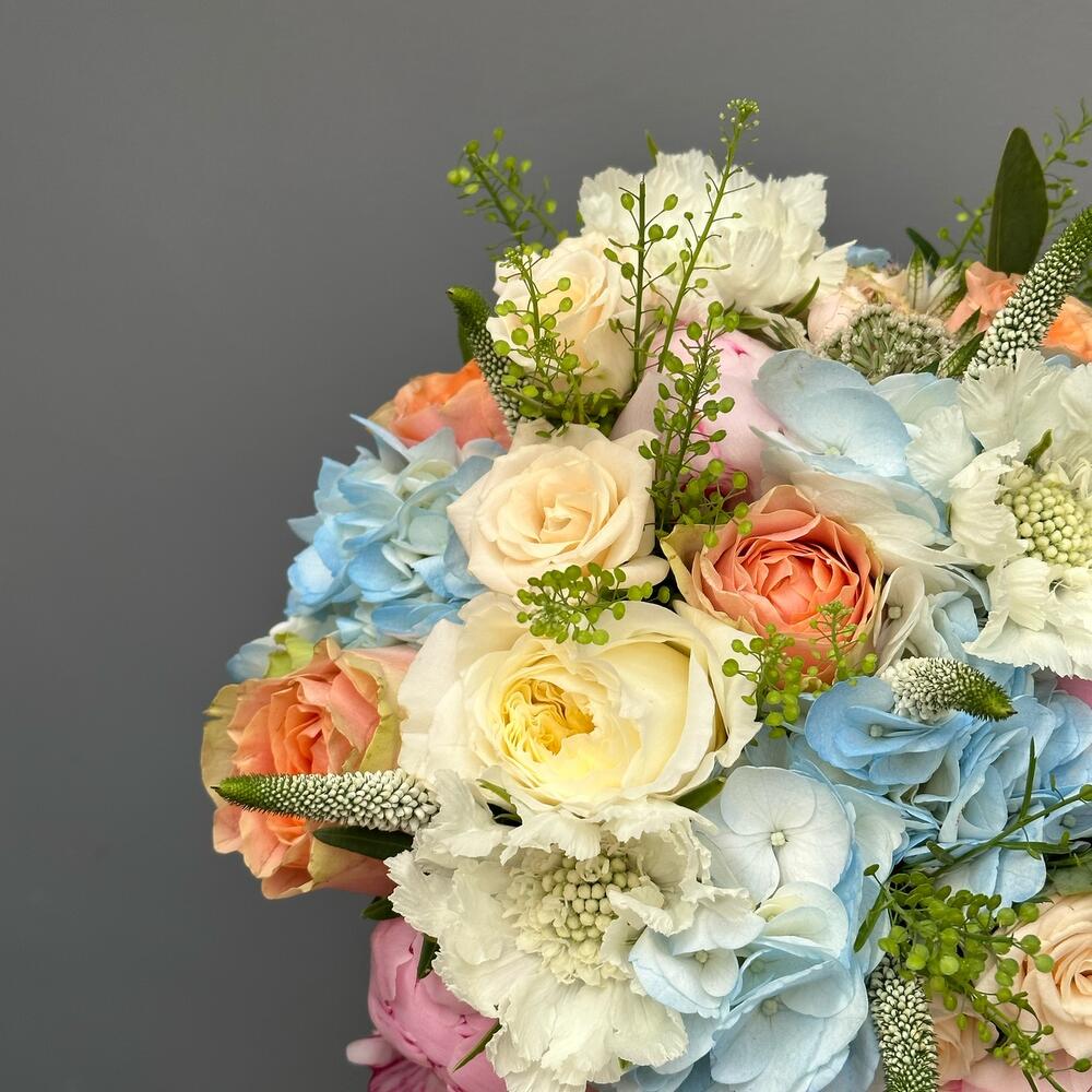 Veronica - 6 шт. Spray rose - 3 шт. Hydrangea - 2 шт. Green bell - 3 шт. Peony - 3 шт. rose - 4 шт.
